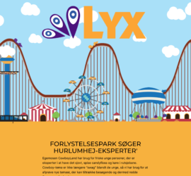 ‘PLan Lyx: Forlystelsespark søger hurlumhej-eksperter’. Egemosen CowboyLand har brug for friske unge personer, der er eksperter i at have det sjovt, spise candyfloss og køre i rutsjebane. ...